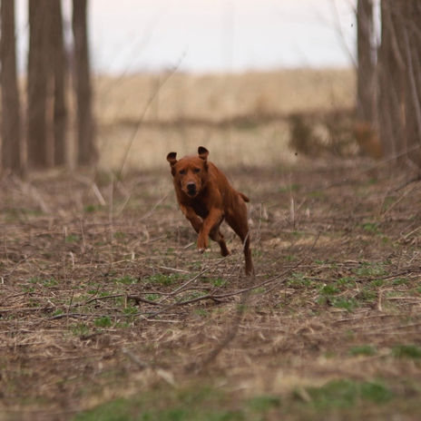 She has an intense motor - high energy, fast, and all go! High drive and loves to work with an ideal temperament for sports, hunting and SAR. One of her littermates was a certified Cadaver dog at just 7 months old! From a young age she has shown incredible confidence and nerve strength, with the typical labrador temperament that doesn't hesitate to greet a stranger or explore a new environment. At 45 lbs she’s lean, athletic, and a fun sport & hunting dog.